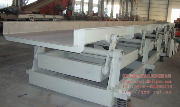 我們振強(qiáng)振動機(jī)械公司生產(chǎn)的耐高溫水平振動輸送機(jī)采用兩臺振動電機(jī)作為激振動源,運(yùn)用自同步原理,兩臺振動電機(jī)反向轉(zhuǎn)動,使輸送機(jī)底部平衡架產(chǎn)生往復(fù)振動,經(jīng)過主振簧與導(dǎo)向板簧的作用,帶動上部輸送槽振動,從而達(dá)到輸送物料的目的。該類型振動輸送機(jī)廣泛應(yīng)用于礦山、冶金、建材、煤炭、化工、糧食、醫(yī)藥等行業(yè)且溫度在300℃ 以下的各種粉狀、粒狀、塊狀及其混合物等物料的輸送。
